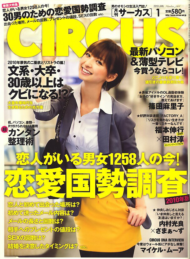 CIRCUS (サーカス) 2010年 01月号 [雑誌] 価格: 580円 レビュー評価:4.0 レビュー数:2 ベストセラーズこの雑誌の新刊が登録されたら新着メールを通知する※新着メール登録ページの「登録名」に商品コードが表示されますが、不具合ではありませんのでご注意下さい。発売日:2009年12月04日登録情報サイズ:A4変楽天ブックス雑誌コード:04045JAN:4910040450108ビジネスマンの為のエンターテインメント誌巻頭大特集 恋人がいる男女1258人の今!ー恋愛国勢調査2010年版/最新パソコン&薄型テレビ・今買うならコレ!ーどこよりも安く買う!値引きの最新鉄則8カ条/2010年の景気の二番底とリストラの嵐!文系・大卒・30歳以上はクビになる!?ー大量失業時代を生き残るための処方箋/表 Supported by 楽天ウェブサービス |