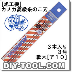 [旭工機] カメカ高級糸のこ刃 3本入り 3号 軟木 [ア10] (パッケージ赤) 価格: 462円 レビュー評価: 0.0 レビュー数:0 旭工機の糸鋸盤には、旭工機の糸鋸刃を…。 木材を例とした硬さの種類 軟木相当 桐、杉、松、シナベニヤ、バルサ等 中間木相当 桂、檜、ツガ、カヤ、イチョウ、ヒバ、パイン等 硬木相当 ブナ、楢、桜、黒檀、シタン、ラワン等 ※あくまでも参考です。(材料の厚みによって異なります。) 高級糸鋸刃<1号?6号> 型番 品名 用途 返し刃 刃の形状と厚み・幅 ア8 カメカ高級1号 <18山アサリ付> 硬木 ○ ア9 カメカ高級2号 <24山アサリ付> 中間木 ○ ア10 カメカ高級3号 <54山> 軟木 ○ ア11 カメカ高級4号 <24山> 軟木 ○ ア12 カメカ高級5号 <28山> 軟木 ○ ア Supported by 楽天ウェブサービス |